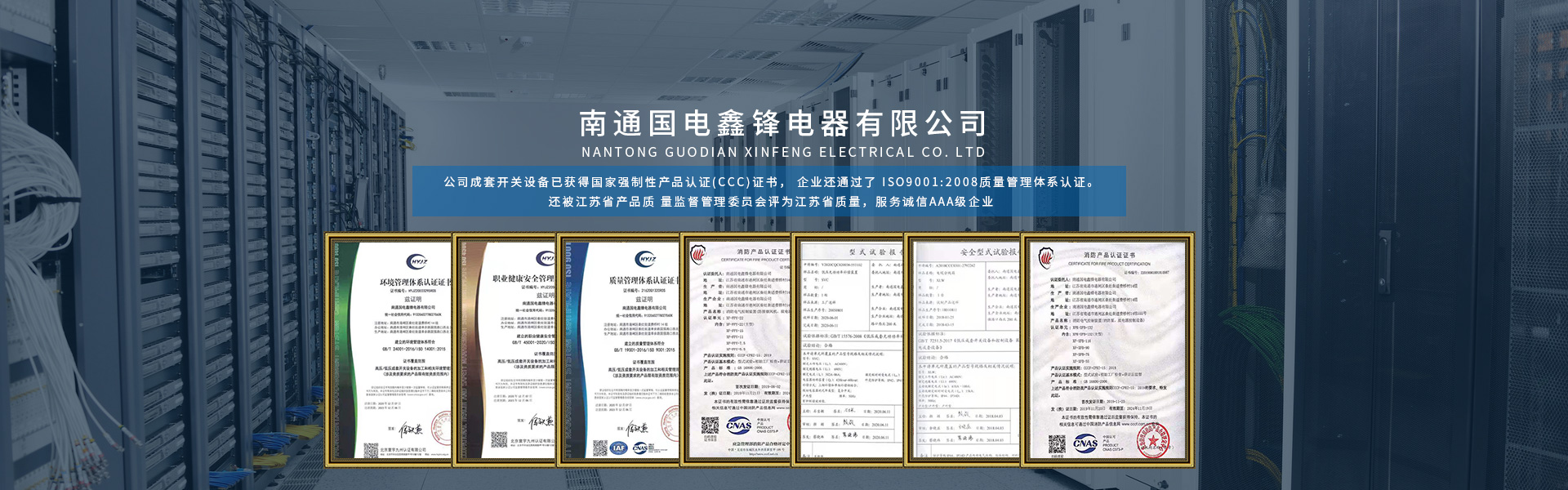 南通國電鑫鋒電器有限公司座落在有中國江蘇省南通市,南通是全國首批十四個(gè)沿海對(duì)外開放城市之一,是我國 民族紡織工業(yè)的搖籃和長江沿線的港口城市,又是中國的體育之鄉(xiāng), 教育之鄉(xiāng)崛起中的南通是江海大地上一顆璀燦的明珠。 公司成立于2005年,是專業(yè)生產(chǎn)各類高低壓成套開關(guān)設(shè)備的專業(yè)廠家,公司成套開關(guān)設(shè)備已獲得國家強(qiáng)制性產(chǎn)品認(rèn)證(CCC)證書, 企業(yè)還通過了 ISO9001:2008質(zhì)量管理體系認(rèn)證。